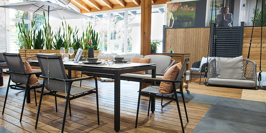 GartenmöbelausstellungVielfältige BodenauswahlBodenstudioTürenstudioLiving Elemente im ShowroomGartenmöbelausstellungTerrassenauswahlHochbeete